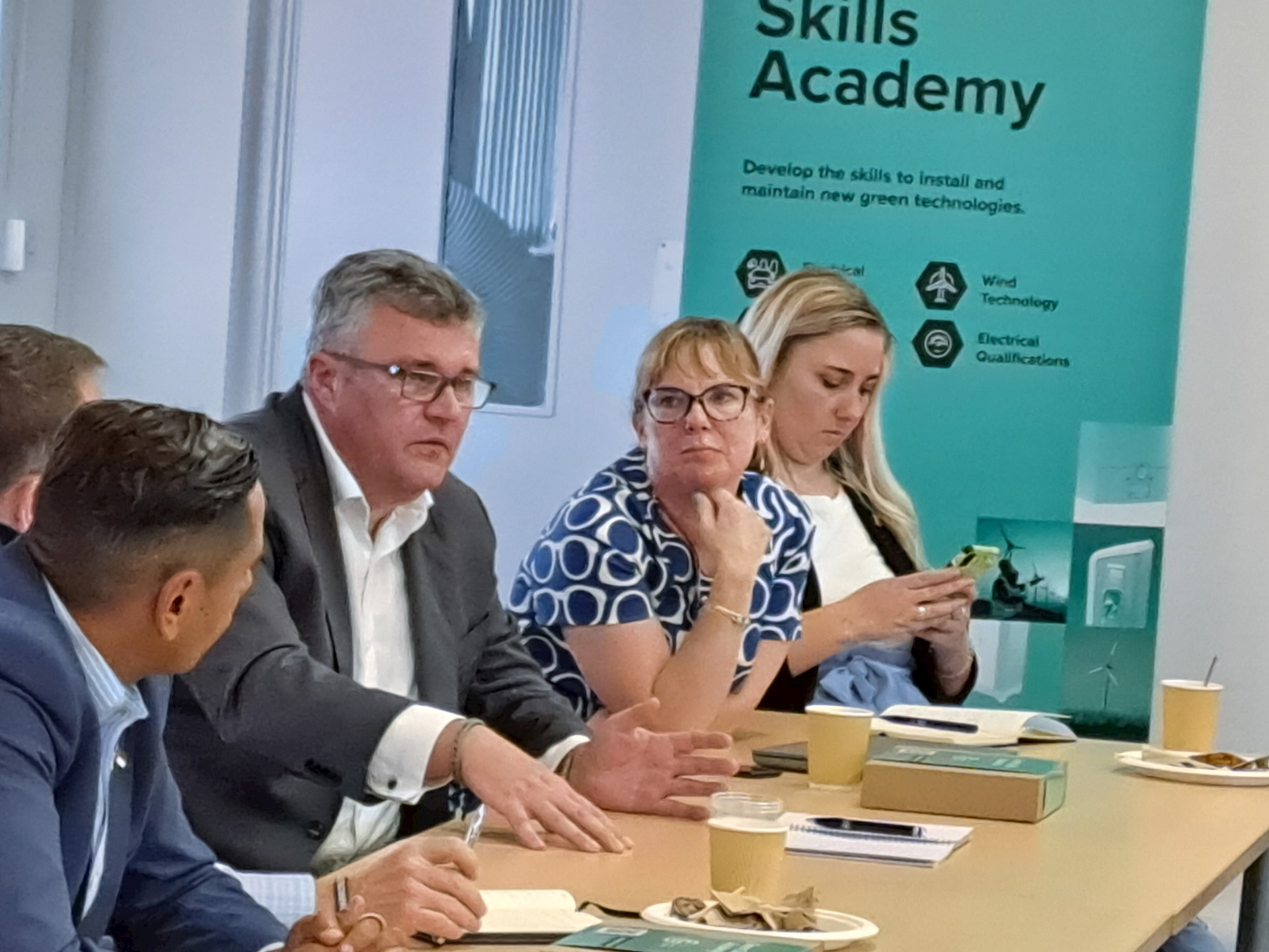 The visit included a lively 30 minute round table discussion covering topics such as; industry’s role in creating clean energy jobs; the timeline and progression around skills and qualifications; complexities around funding; supplier investment, and the importance of raising awareness of green career paths at a young age.